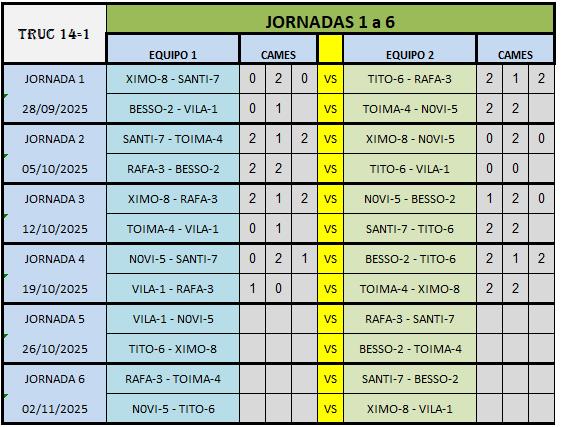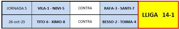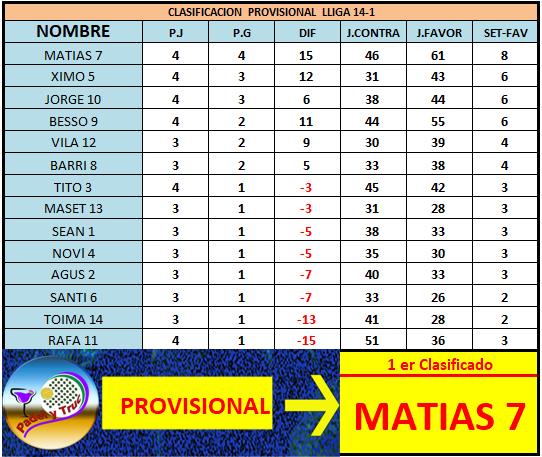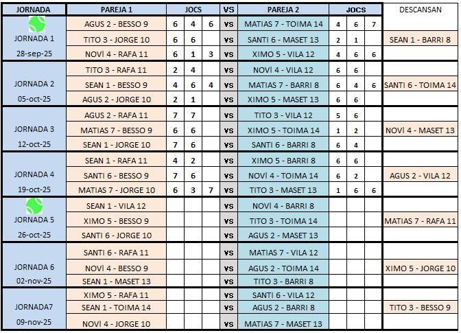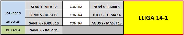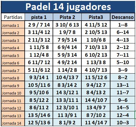 LA NUEVA LIGA SE COMPONE DE 14 JUGADORES .CADA SEMANA TIENEN QUE DESCANSAR DOS JUGADORES (PAREJA).