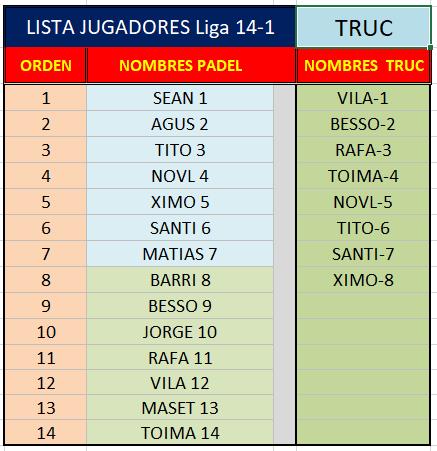 ¡COMENZAMOS NUEVA LIGA CON 14 JUGADORES LIGA PADEL Y TRUC 14-1